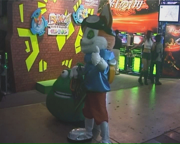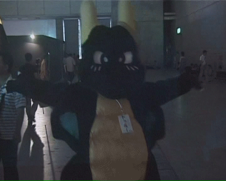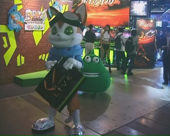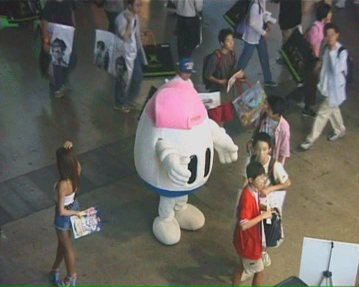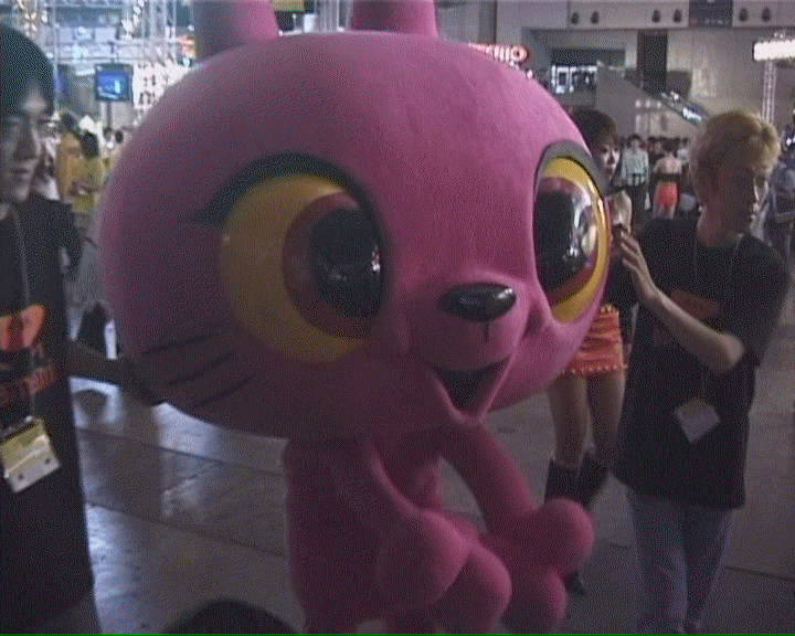 They poses some Mascots, Suiters, Cosplayers and a Plushi.